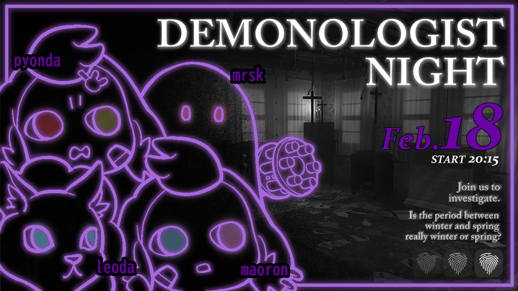 2月18日(水)20時15分頃から、マオーンさんのところでDemonologistの配信に参加します。